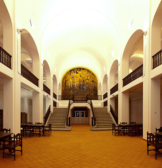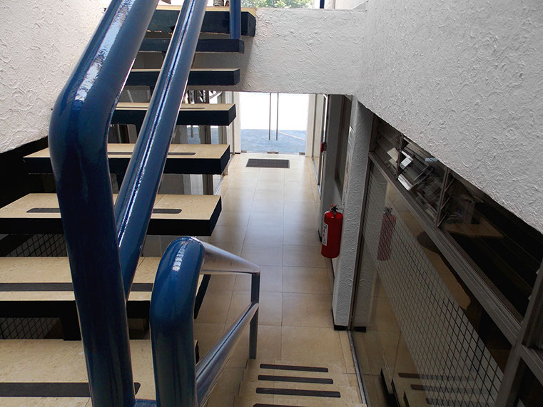 ESCUELA PRIMARIA BENITO JUÁREZ. Restauración. Pasillo de aulas planta alta.